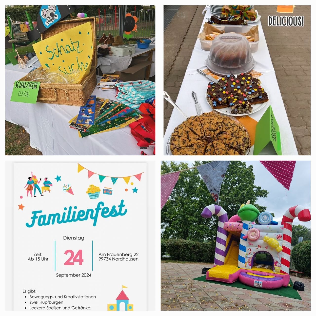 Überall waren bunte Luftballons und Wimpelketten dekoriert. Es gab Bewegungs- und Kreativstationen, eine Schatzsuche, zwei Hüpfburgen und noch vieles mehr. Die Kinder haben sich zusammen mit ihren Eltern sehr amüsiert, auch wenn das Wetter nicht ganz mitgespielt hat.