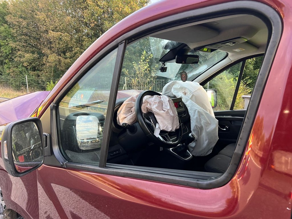 Der Fahrer eines Dodge mit Anhänger befuhr gegen 06:45 Uhr die rechte Fahrspur der Autobahn in Fahrtrichtung Göttingen. Plötzlich und unvermittelt prallte ein 56-jähriger litauischer Fahrer mit seinem Renault Traffic auf das Gespann.