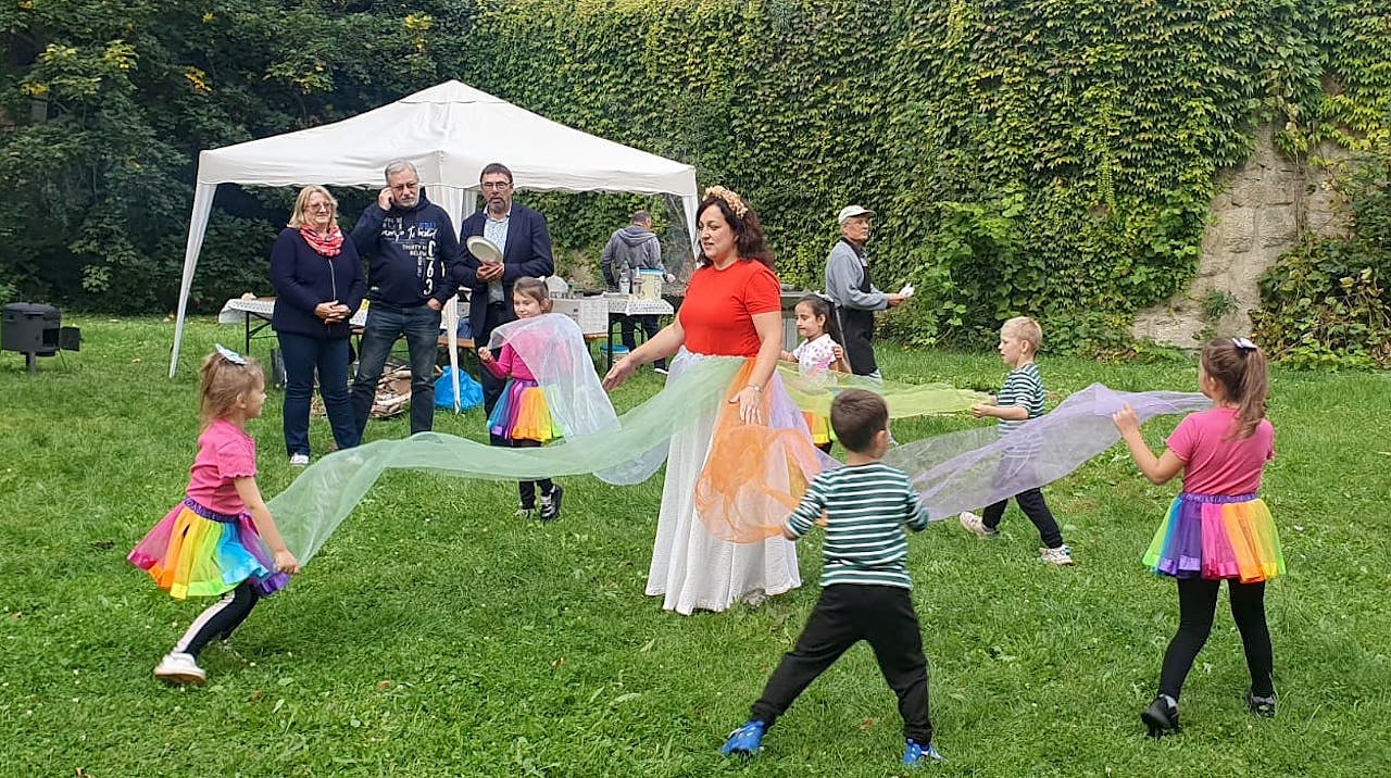 Nachdem die Kindertanzgruppe Barbariski" ihr Können gezeigt hat, wurde probiert und die Rezepte ausgetauscht. Alles hat sehr lecker geschmeckt und beim Verkosten kam es zu guten Gesprächen und es wurde viel gelacht. Der Regenguss tat dem Erfolg der Veranstaltung keinen Abbruch.