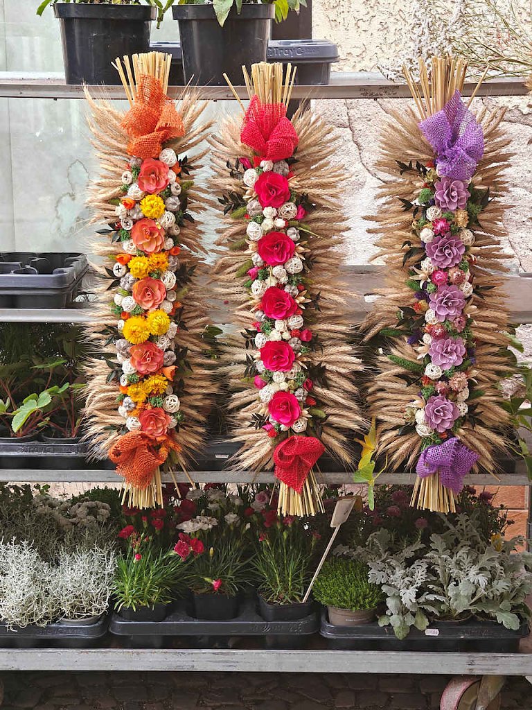 Amngeboten wurden Zwiebelkalender, vielfältige Gewürz- und Gemüsearten, Obst, Zwiebel- und Speckkuchen, Hausschlachtewurst, Weine, Säfte, Honig, Korb- und Töpferwaren und vieles mehr.
