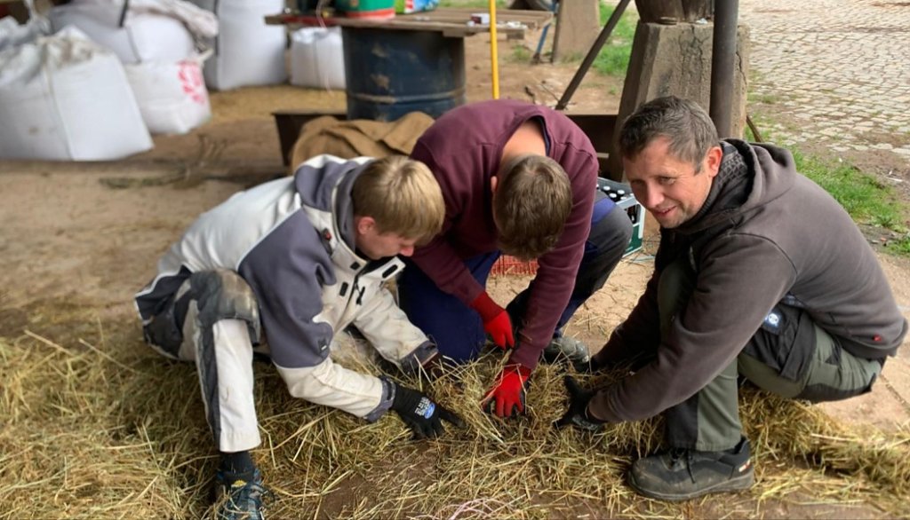 "Unsere Strohbären mit dem Wahrzeichen der Hochseicher von Kleinwerther haben bereits ihre Positionen eingenommen. Bedanken möchten wir uns hierfür bei Magnus und Lohnunternehmen Becker sowie dem Autohaus Töpfer. Pünktlich 10 Uhr startet am Neubaugebiet Brockenblick der Erbesbärumzug durchs Dorf.