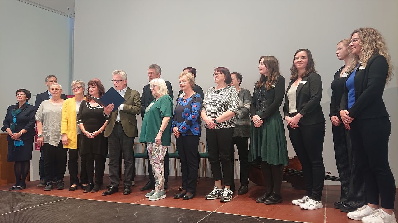 Es war unter anderem eben diese tiefe Vernetzung in der Region, die für die Jury des deutschen Bibliothekspreises den Ausschlag gegeben hat. Die Auszeichnung gibt es in zwei Kategorien, wie der Vorsitzende der auszeichnenden Telekomstiftung, Dr. Thomas de Maizière später ausführen sollte, einen großen Preis, um den üblicherweise die prestigeträchtigen Häuser der urbanen Zentren zwischen Berlin, München und Hamburg ringen und ein kleiner Preis für kleinere Häuser aus eher ländlich geprägten Gegenden.