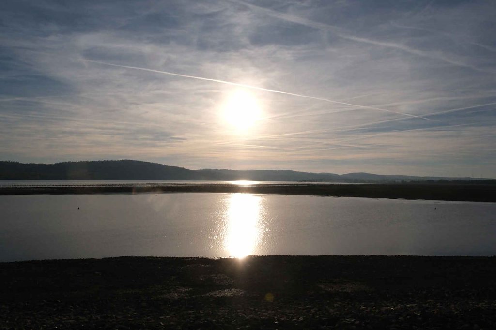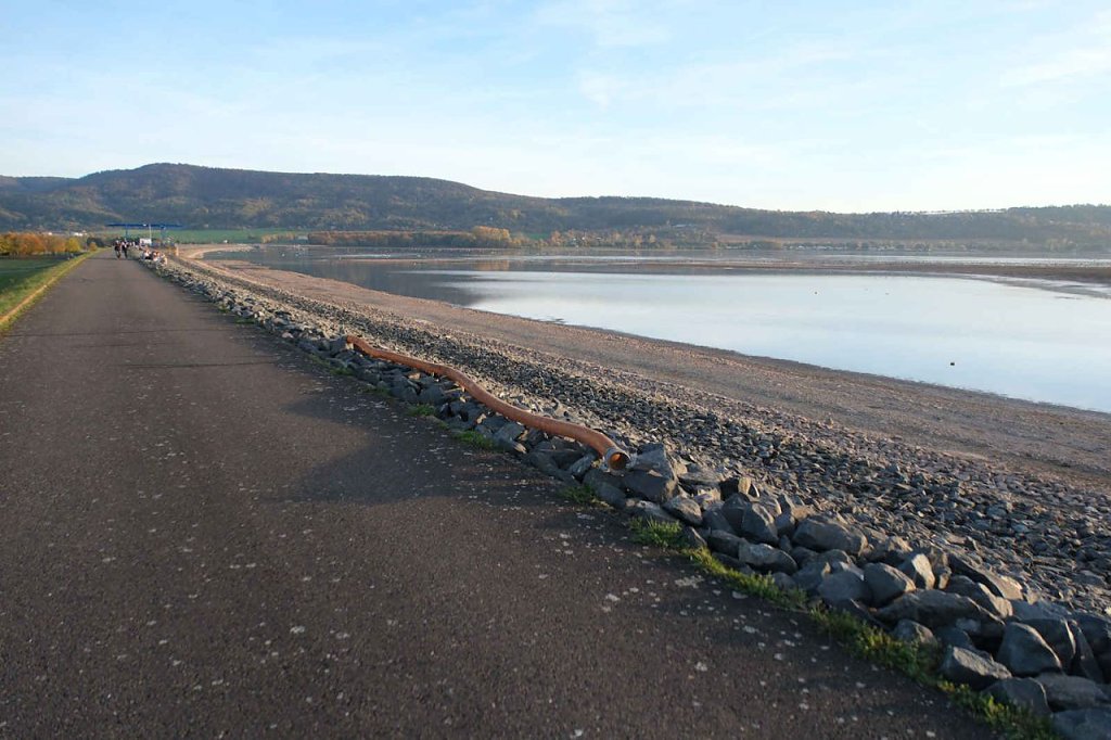 Die Einen fliegen weiter, andere kommen gerade an. Das Schilf, das durch das Hochwasser an der Staumauer angespült wurde, hat man verbrannt und mit Feuerwehrschläuchen abgesaugt.