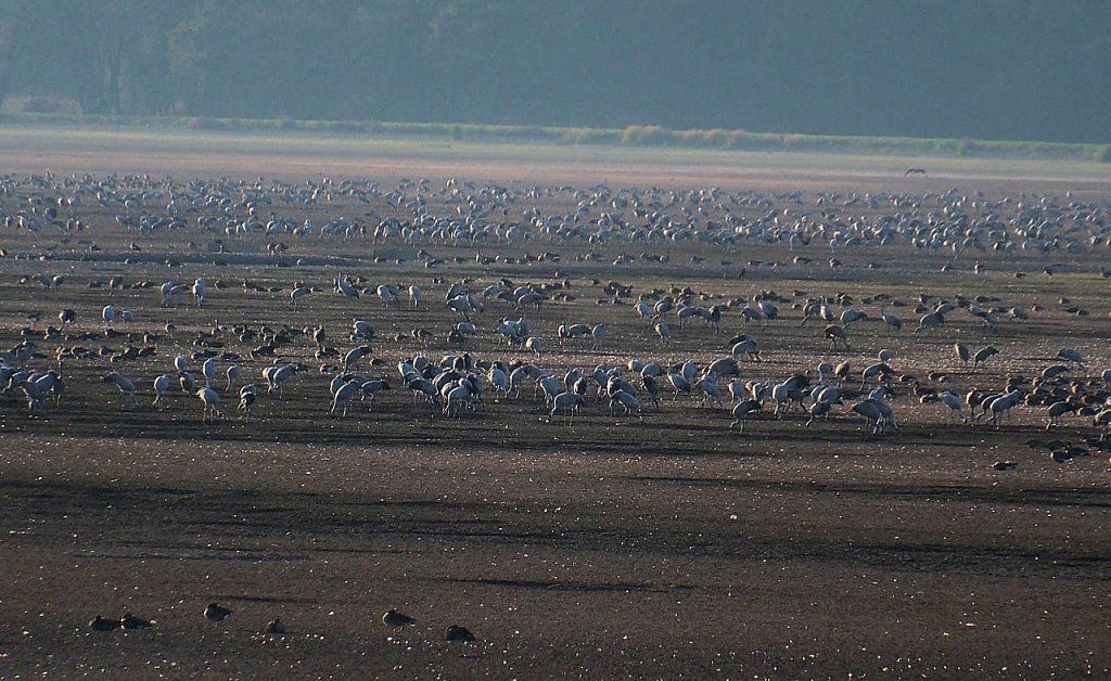 Viel fremde Kennzeichen sah man auf dem Parkplatz. Der Ranger erklärte viele Neugierigen diese Naturerscheinung. Am Dienstag sollen über 37.000 Vögel am Stausee gewesen sei. Aber ist ein ständiges Kommen und Gehen.