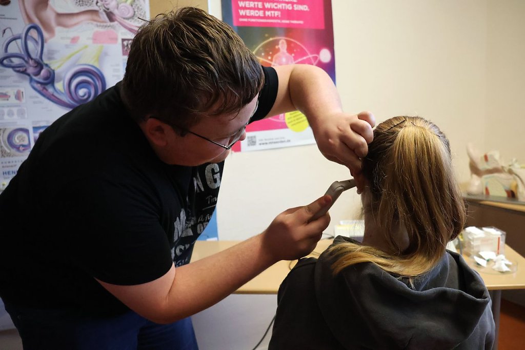 Ob alles im grünen Bereich bei den Auszubildenden ist, machte ein Gesundheitscheck deutlich. Angeleitet von Lehrkräften des SBZ NDH aus dem Bereich der Funktionsdiagnostik wurden EKG’s, Hörtests, Gleichgewichts- und Lungenfunktionstestungen durchgeführt. Über die Ergebnisse war wohl so Mancher verblüfft und hat zumindest einen Denkanstoß zu einer gesünderen Lebensweise erhalten.