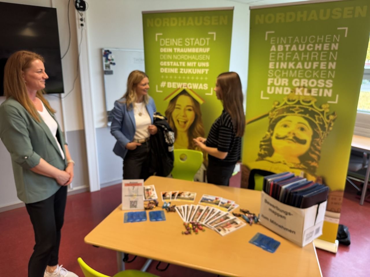Neben Firmen und Ausbildungsbetrieben war auch die Stadtverwaltung Nordhausen mit einem Info-Stand vor Ort. Zum Auftakt der Messe erinnerte Schulleiterin Kati Flöder an den Start des Tag-in-der Praxis-Programms (TIP) für die 8. Klassen vor rund drei Jahren an ihrer Schule.