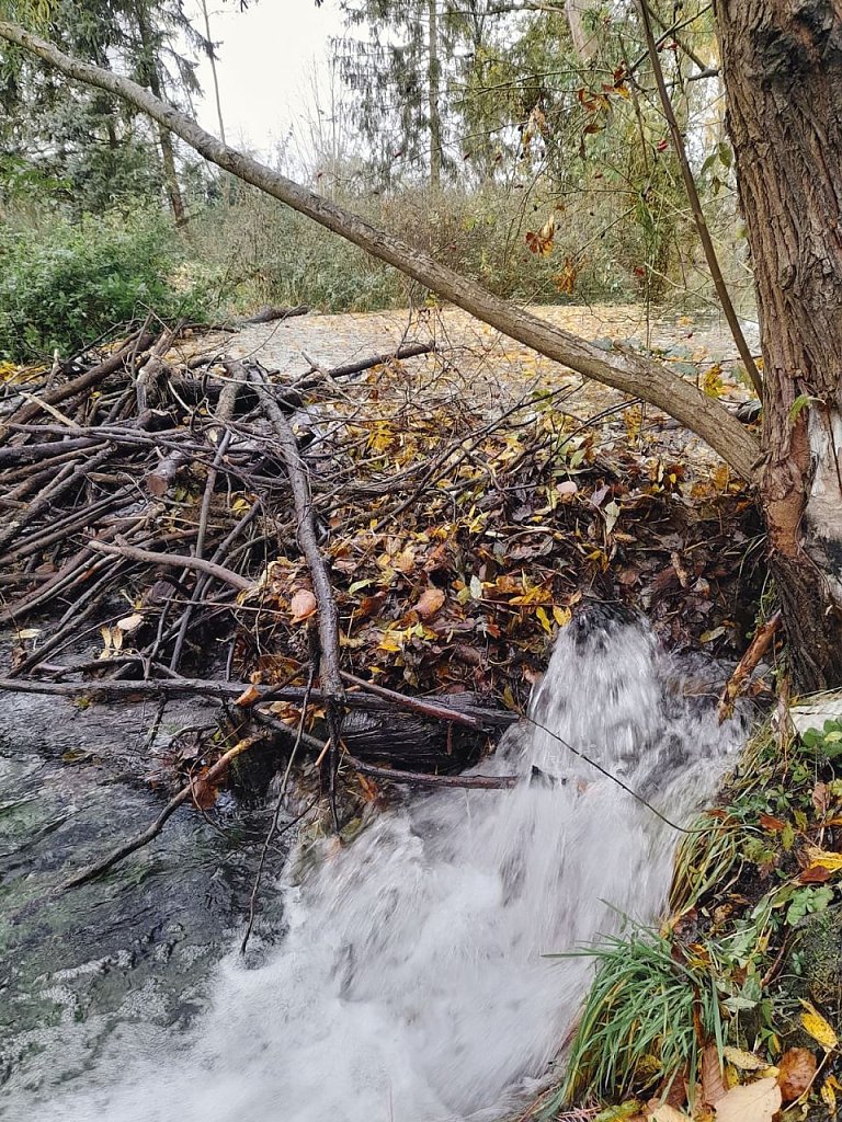 Unser Leser J.T. beobachtete mit einiger Sorge die Bauarbeiten einer Biberfamilie, die zwischen dem Salzabad und der Ortsdurchfahrt in Richtung Herreden für vorübergehende Hochwassergefahr zu sorgen schien. Aber was ist in einem solchen Falle eigentlich zu tun?