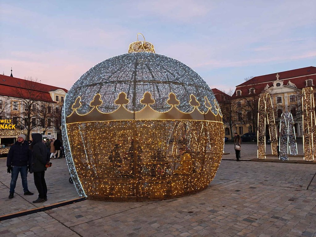 Weihnachten in Magdeburg mit Lichterwelt und Weihnachtsmarkt: 1,2 Millionen LED-Lämpchen und 80 große Leuchtelemente lassen die Stadt