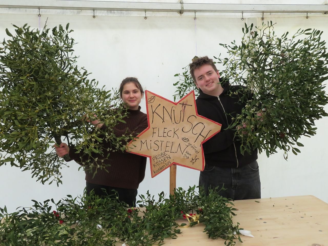 Gemeindepädagoge Frank Tuschy berichtet: Plötzlich stand Montag Mittag ein kleiner LKW voller Misteln vorm Pfarrhaus unserer Kirchengemeinde. Dieses Geschenk haben wir freudig angenommen und wir wollen versuchen es am kommenden Wochenende bei unserem KILA Handwerkermarkt vor der Blasii Kirche an den Mann bzw. die Frau zu bringen.