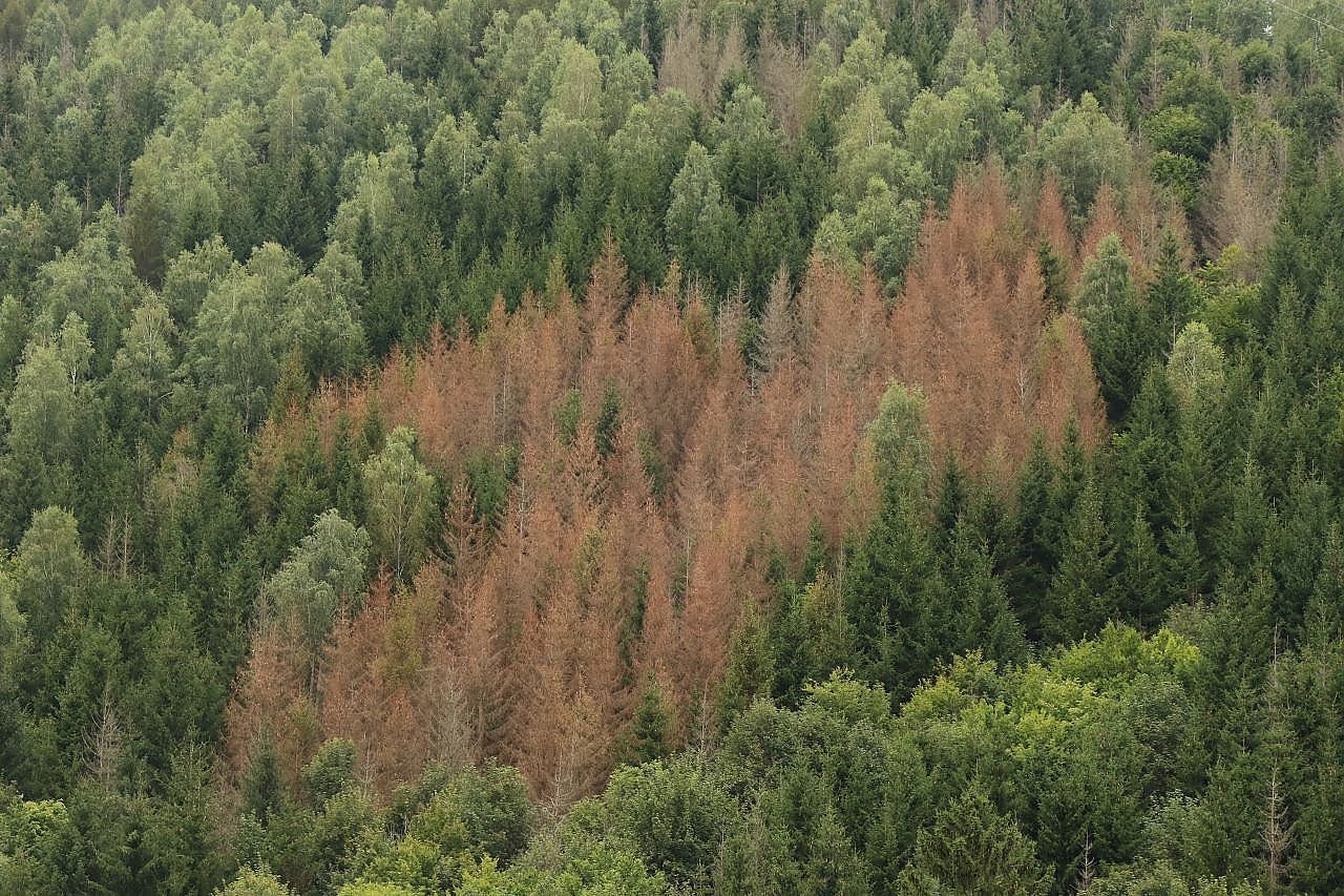 - Fichte: Der Zustand der Fichte hat sich leicht verbessert. Die Fichtenflächen mit deutlichen Vitalitätsverlusten lag bei 41 Prozent (2023: 45 %). Der Flächenanteil gesunder Fichten betrug 27 Prozent (2023: 28 %). Bei den jüngeren Fichten lag der als gesund eingestufte Flächenanteil mit 41,9 Prozent erheblich höher als bei älteren Fichten (13,1 %). Über 20,6 Prozent der begutachteten Fichten sind durch Borkenkäferbefall abgestorben und entnommen. Der Anteil der Fichten an den Waldbäumen nimmt weiter ab.