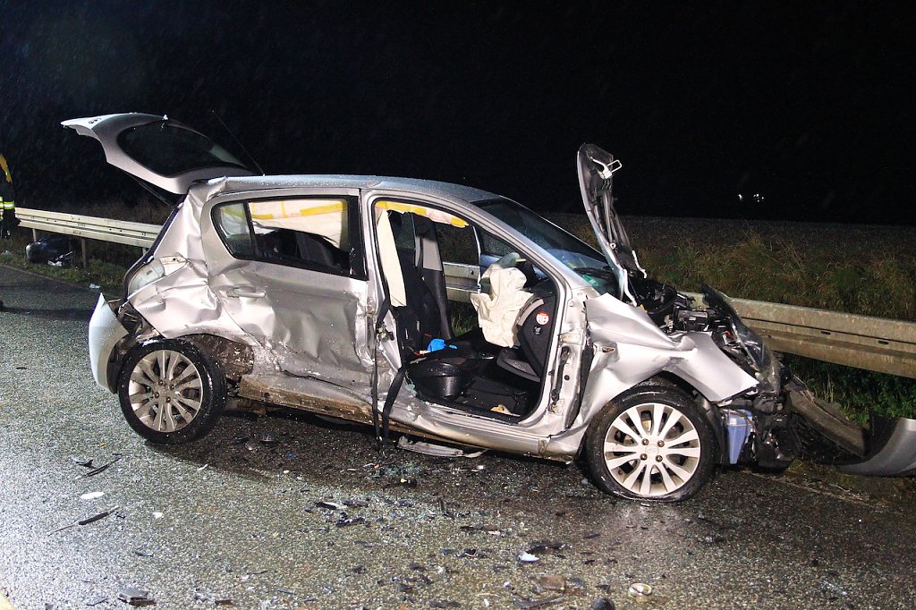 Die beiden Fahrzeuginsassen mussten durch die Feuerwehr aus ihrem Fahrzeug befreit werden. Hierfür musste das Dach des PKWs abgetrennt werden. Der Hyundai kam im weiteren Verlauf des Unfalls quer auf die Fahrbahn und kollidierte mit einem weiteren im Gegenverkehr befindlichen PKW. Der VW Caddy prallte in die Beifahrerseite des Hyundai. Die beiden Insassen im Hyundai mussten ebenfalls aus ihrem PKW befreit werden. Sie wurden bei dem Unfall schwer verletzt.