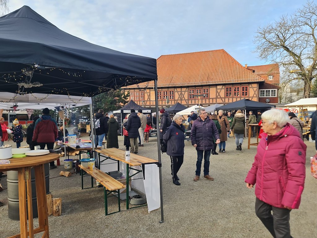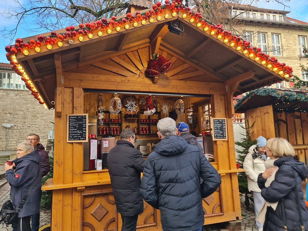 Ein paar Schritte weiter lud die kleine Meile zum Verweilen ein. Hier trafen sich heute viele Menschen, um die Vorweihnachtszeit zu genießen. Es gab zahlreiche Stände, die Speisen und Getränke anboten. Sicher traf es sich gut, dass heute verkaufsoffener Sonntag war. Hierdurch waren generell mehr Menschen im Stadtgebiet unterwegs, was den Händlern eine Umsatzsteigerung brachte.