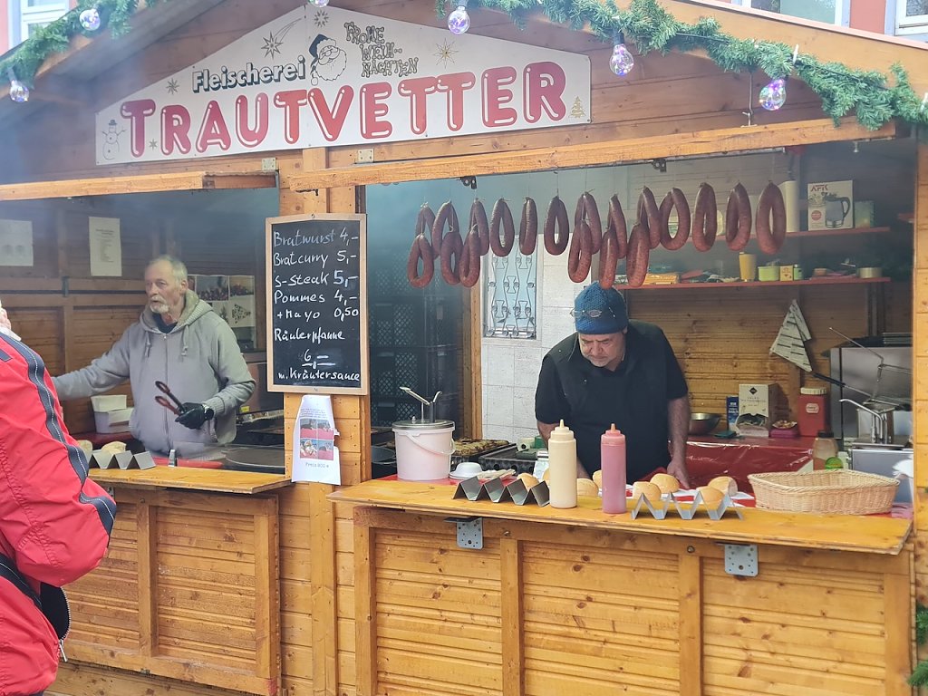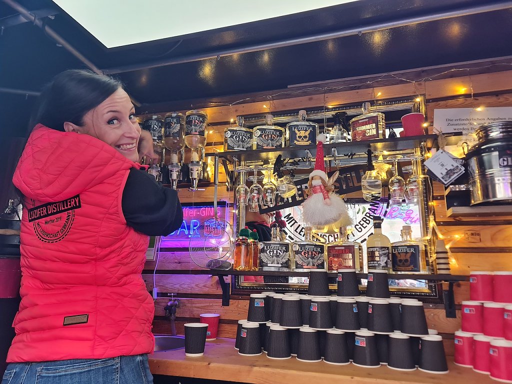 Auch viele Händler zeigen sich erleichtert, nachdem sie in den vergangenen Tagen aufgrund der Wetterlage weniger Umsatz generieren konnten. Neben dem Wetter spielen aber auch weitere Faktoren mit ins Marktgeschehen hinein: Wir sind seit 1994 hier in Nordhausen und betreiben neben einem Süssigkeitenstand auch seit einigen Jahren einen Stand, an dem man neben Feuerzangenbowle weitere Spirituosen kaufen kann, erzählt uns Familie Koppe aus Peine. Die Mieten sind sehr hoch. Energie muss extra bezahlt werden. Das war aber schon immer so. Die Kostensteigerung allgemein schmälere zwar den Gewinn, dennoch versuche man, von höheren Verkaufspreisen abzusehen. Noch ginge das auch. Auf meine Frage hin, ob Besucher des Weihnachtsmarktes manchmal auch bargeldlos zahlen möchten, entgegnet die Schaustellerin, dass dies technisch sehr schwer realisierbar sei: Durch Kartenzahlung kommt es zu langen Wartezeiten am Stand und zudem würden die wenigsten Händler für diese kurze Dauer in Kartenlesegeräte investieren wollen. Sehr wenige Besucher würden generell nach einer Bezahlung mit Karte fragen.
