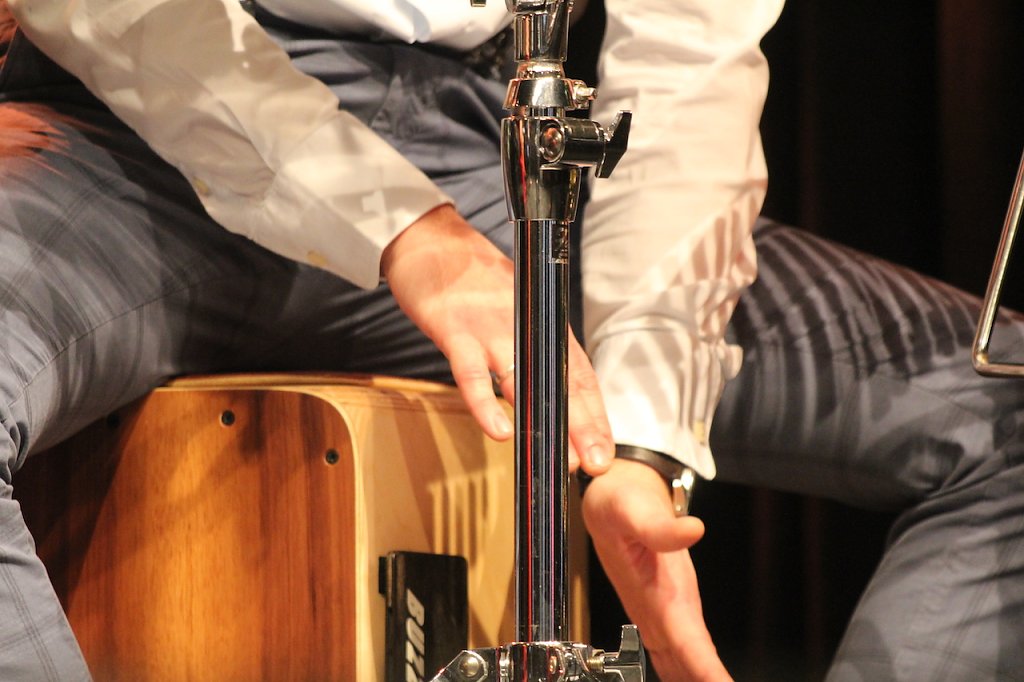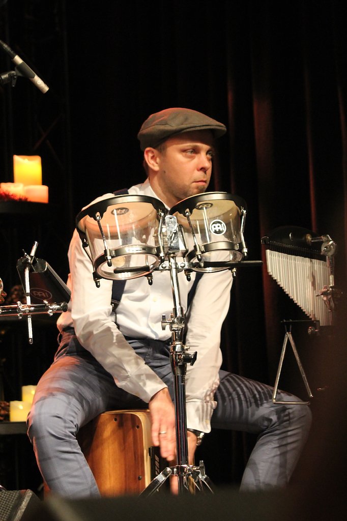 Tobias Raßbach, neu in Ensemble des Tenortrios, begleitete mit seinen Percussionsinstrumenten das Weihnachtskonzert (Foto: Eva Maria Wiegand)