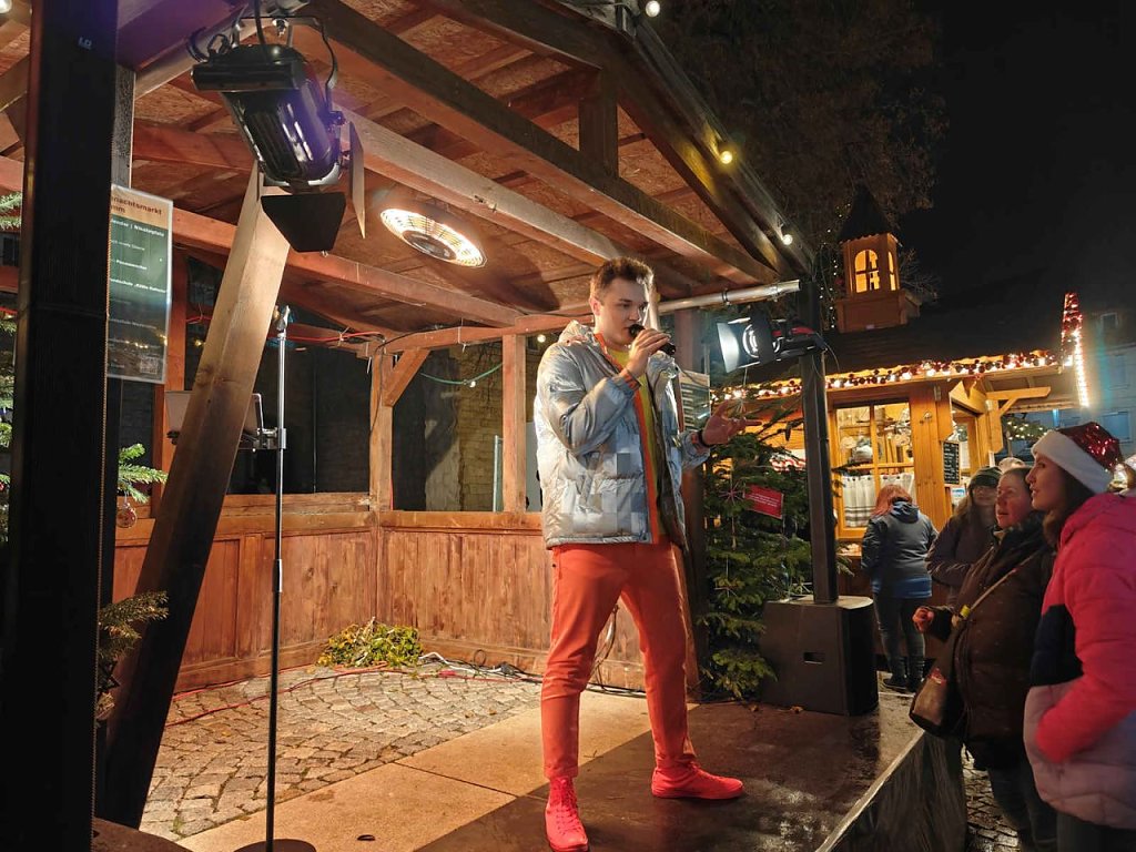 Bei Nieselregen auf dem Weihnachtsmarkt waren doch erstaunlich viele Besucher. Kevin Neon trat auf und begeistertet seine Fans. Einer war extra aus Berlin angereist um den jungen Sänger zuzujubeln. Zum Schluß begab ich mich nochmal in die Unterstadt in de Fürstenhof.