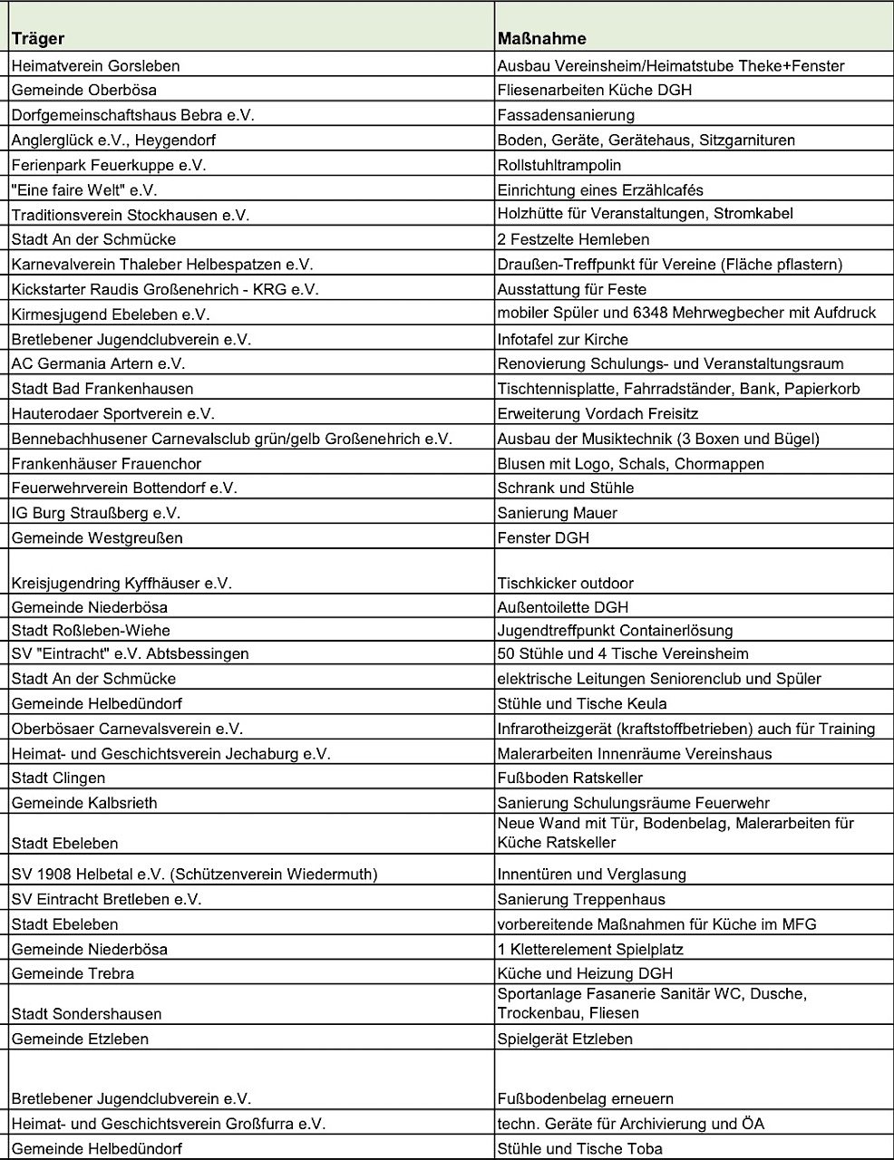 Liste der 41 geförderten Projekte 2024 zum 30-jährigen Jubiläum des Kyffhäuserkreises (Foto: LRA Kyffhäuserkreis)