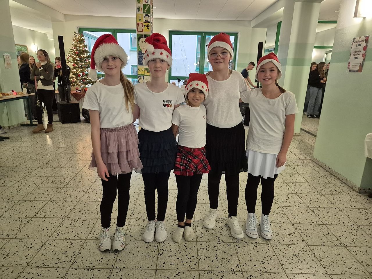 Der Tag begann mit einer besonderen Überraschung: Bereits in der ersten Stunde stattete der Weihnachtsmann der Schule einen Besuch ab. Mit kleinen Präsenten und seiner fröhlichen Art brachte er vor allem die jüngeren Schülerinnen und Schüler zum Strahlen und sorgte für eine noch festlichere Stimmung.