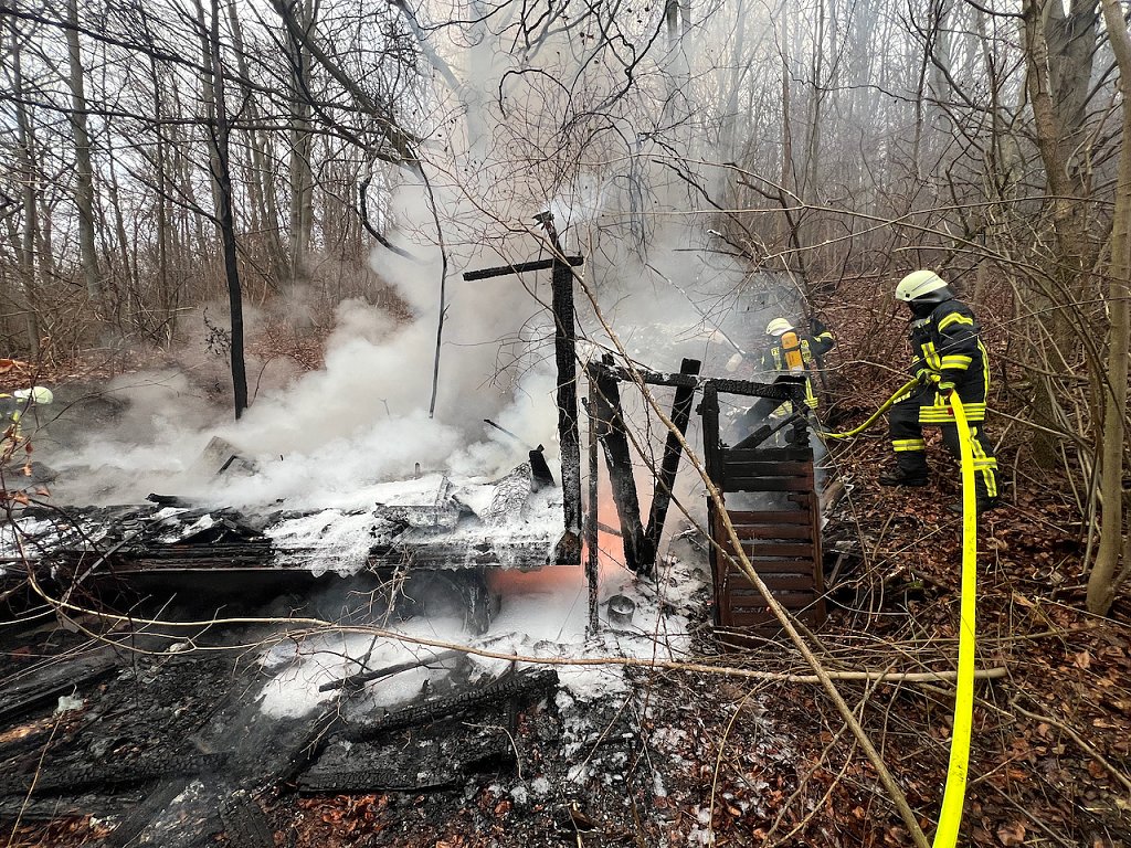 Beim Eintreffen der Feuerwehr stand der Bauwagen bereits in Vollbrand. Um an den Brandort zu gelangen mussten die Einsatzkräfte unter anderem mit der Kettensäge arbeiten. Seit einigen Jahren stehen die Bungalows auf dem Gelände des Campingplatzes leer. Scheiben sind eingeschlagen, Unrat liegt in den ehemaligen, von Campern genutzten Bungalows.