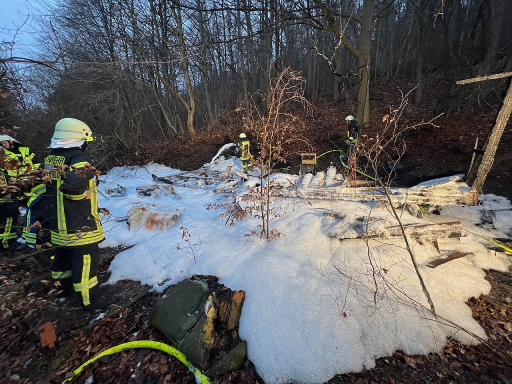 Bis heute. Einen Tag vor Heiligabend. Gegen 14:40 Uhr alarmierte die Rettungsleitstelle die Freiwilligen Feuerwehren aus Hainrode und Wolkramshausen. Schnell waren die Einsatzkräfte vor Ort. Unwegsames Terrain erschwerte den Einsatz, Wasser konnte aus einem Löschteich entnommen werden. Retten konnte die Feuerwehr nichts mehr.