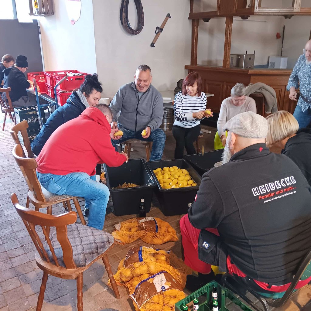 Noch vor Weihnachten wurde eigens für dieses Event in der Hausschlachterei Stephan Bierwirth in Trebra ein Schwein geschlachtet und zu leckerer Hausschlachtewurst verarbeitet. Am Samstagmorgen galt es dann für die über 20 Helferinnen und Helfer den