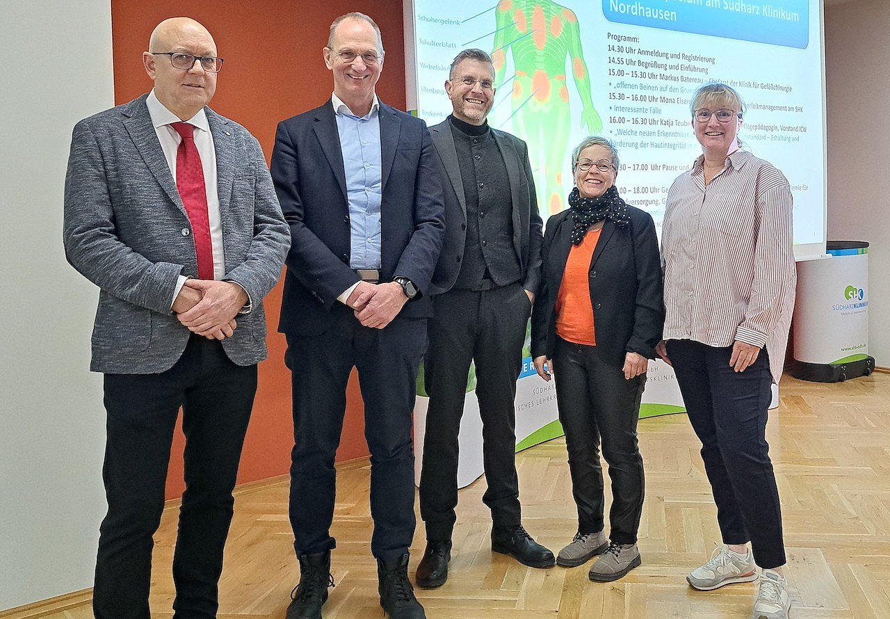 In der zehnten Auflage im vergangenen Herbst standen zum Beispiel Wundheilungsstörungen bei offenen Beinen im Mittelpunkt. Hierzu referierte Markus Batereau, Chefarzt der Klinik für Gefäßchirurgie im Südharz Klinikum. Gerhard Schröder, der Leiter der Akademie für Wundversorgung Göttingen und Mario Gießler stellten das Thema in einer interaktiven Präsentation vor, während Fachtherapeutin Mona Eisenschmidt aktuelle Fälle aus der Praxis erläuterte. Katja Teubner, Pflegetherapeutin Wunde I.C.W. und Vorstandsmitglied des I.C.W., referierte zur Hautintegrität.