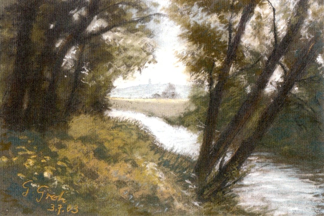 Ich kannte ihn seit Mitte der 1950 Jahre, als ich von der Wiedigsburgschule nach der 8. Klasse an die EOS wechselte, erlebte ihn also von Anfang an als engagierten Kunstunterrichtslehrer. Irgendwann nannte ihn jemand den Stadtpark-Picasso. Sicherlich meinte der Schreiber, ihm damit eine Freude zu bereiten, denn Picasso galt für ihn wohl als der Inbegriff eines Künstlers. Groh hatte andere Vorbilder. Die Impressionisten waren bei ihm favorisiert, eine Kunstrichtung, die besonders Eindrücke festhält, die ein Motiv beim Betrachter hinterlässt, eine Momentaufnahme also.
