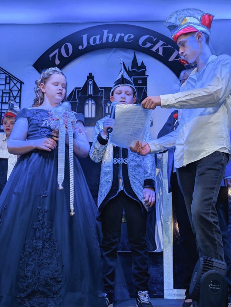 Angeführt wurde die junge Narrenschar von Kinderprinz Ben I. und Kinderprinzessin Elli I., welche beide im Nachbarort Urbach wohnen. Prinzessin Elli tanzt schon viele Jahre beim Görsbacher Kinderkarneval mit und erfüllt sich jetzt einen kleinen Traum. Besonders stolz auf seine Prinzessin ist Opa Gernot, der beim Görsbacher Karneval mit seinen Musikerkollegen von den Görsbacher Kirmesmusikanten den Ton angibt und hierfür eifrig die Trommelstöcke schwingt.