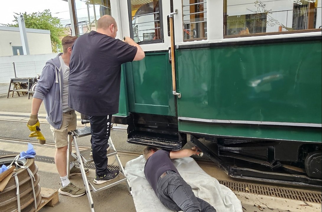 Es gibt immer was zu tun wie hier am historischen Triebwagen TW 23 (Foto: F. Bernsdorf)