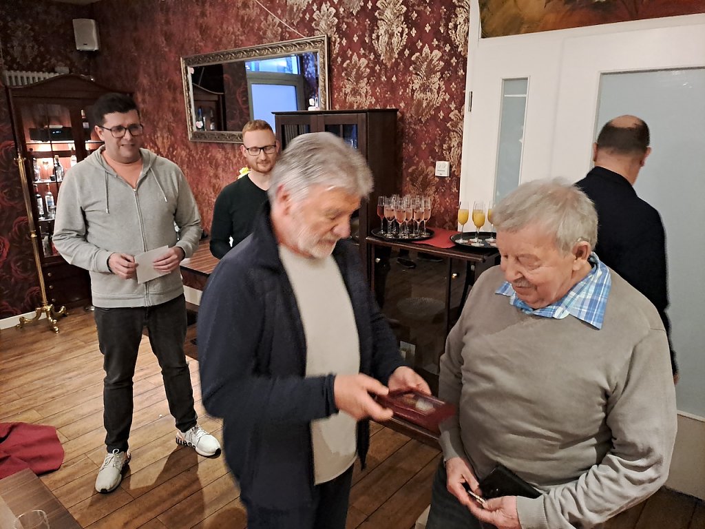 Vereinsvorsitzender Prof. Dr. Philip Heiser sowie Schatzmeister Jens Laubner und die Kinderschutzbeauftragte Stefanie Bartel ließen es sich nicht nehmen Alfons Jarmuszewski zu verabschieden. Der Kreissportbund kam mit seinen Vorsitzenden Gerd Störmer, seinen Geschäftsführer Patrik Börsch und Jugendkoordinator Viktor Vollmer und überreichten ihn die Ehrennadel des Kreissportbundes Nordhausen. Ein weiterer der den Sport in Nordhausen geprägt hat - Werner Hüttcher – war ebenfalls der Einladung gefolgt. Für die vielen weiteren Sportler überbrachte stellvertretend Udo Eidam vom TTV Hydro die besten Wünsche für die Zukunft.