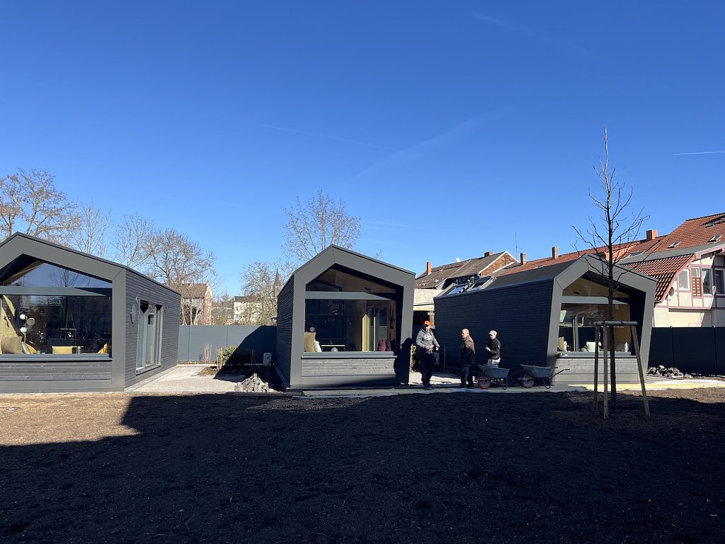 Axel Heck strahlt mit der Sonne um die Wette auf seiner neuen Terrasse inmitten der "tiny houses" (Foto: oas)
