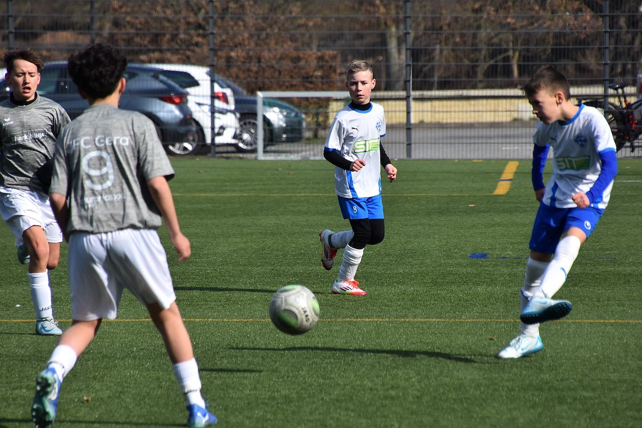 Um noch eine Chance für den Klassenerhalt zu haben, musste also für den Letzten der Tabelle, Wacker 90, D 2, ein Sieg her. In den ersten Minuten standen die Wacker-Kids unter Druck. Zweimal musste Jakob Winter im Wackertor auf der Hut sein. Zuerst wehrte er einen Freistoß von Gera über unser Tor und dann parierte er in der 8. Minute einen Freistoß zur Ecke, die jedoch nichts einbrachte. Die Nordhäuser konnten sich dann mit verheißungsvollen Gegenangriffen befreien. Die nächsten 12 Minuten gehörten den Wacke-Kids. Ein Freistoß aus halbrechter Position wurde von Marlon Grunig zu zentral auf den Torwart geschossen. Zwei Abschlüsse von Chance Tchete verfehlten das Gastgebertor sehr knapp. Allein auf den Gera-Torwart zusteuernd, blieb Chance am herauslaufenden Torwart hängen. In der 23. Minute hatten die Geraer wieder ein Abschluss, den Jakob über das Tor lenkte. Im Gegenangriff schoss Marlon Grunig knapp am Gera-Tor vorbei. Eine Minute später fing Chance Tchete einen Abstoß der Geraer ab. Sein Schuss im Strafraum fing ein Geraspieler kurz vor der Torlinie mit letztem Einsatz noch ab. Vor dem Halbzeitpfiff ging auch der Geraer Abschluss an unserem Tor vorbei.