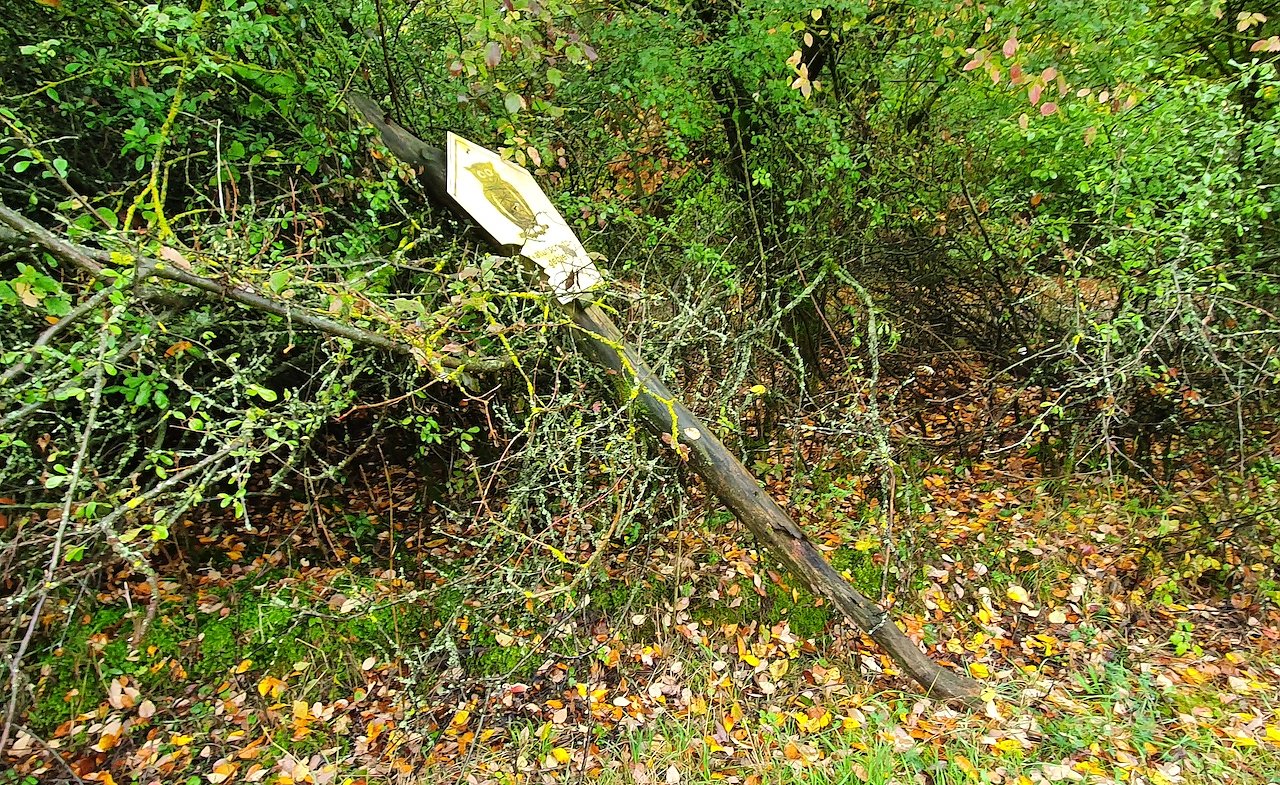 Dieses Naturschutzgebietsschild, aufgenommen im Herbst 2020 im NSG Rüdigsdorfer Schweiz, ist, wie viele andere auch, nicht, wie im Beitrag des Landkreises Nordhausen vom 14.03. u.a. beklagt, Vandalismus zum Opfer gefallen, sondern einer Nichtumsetzung geltenden Naturschutzrechts durch verantwortliche Institutionen. (Foto: B.Schwarzberg)