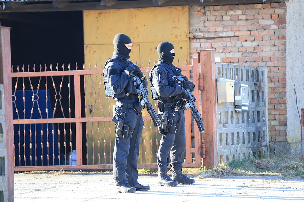 Das weitläufige Objekt wurde durch schwerbewaffnete Einsatzkräfte gesichert. Zwei Suchhunde wurden eingesetzt. Bei den umgesetzten Durchsuchungsbeschlüssen ging es laut Aussagen der Staatsanwaltschaft um Beweissicherung zu Verstößen gegen das Waffengesetz.