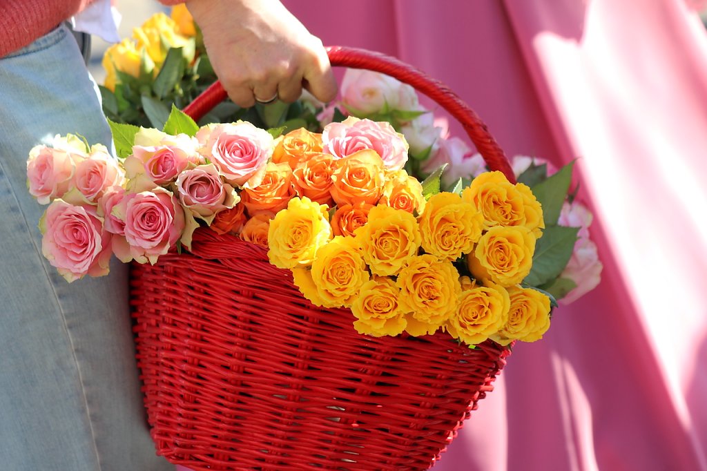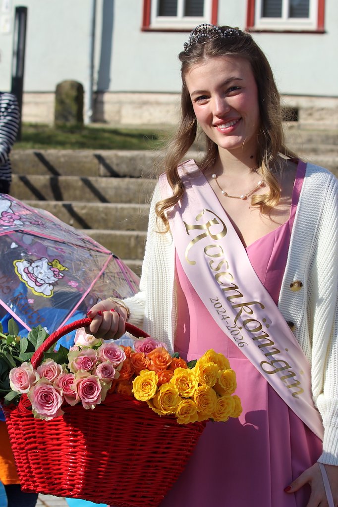 Der Festumzug wurde von Bürgermeister Mathias Heinz (Mitte), Kurdirektorin Katja Rudolph (li.) und der Rosenkönigin Maxima angeführt (Foto: Eva Maria Wiegand)