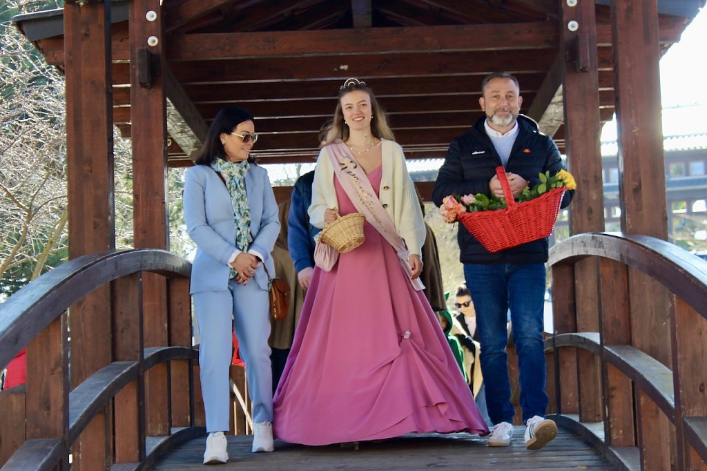 Durch die Innenstadt, am Rathaus vorbei bis hin zur Celenus-Klinik im Kurpark führte ihr Weg, der an den Straßenrändern von Eltern, Freunden und Passanten gesäumt war. Von Klinikdirektor Prof. Dr. Jörg Frank Richter wurden sie vor der Kurklinik empfangen und jedes Kind erhielt einen wasserblauen Rucksack zum Geschenk. In Begleitung von Bürgermeister Reinz, Kurdirektorin Rudolph und der Rosenkönigin Maxima ging es von dort aus weiter bis zur Friederiken Therme. Dort stimmten alle am geschmückten Brunnen ein Geburtstagslied auf den Status als Heilbad an und warfen symbolisch die Regentropen in den den Wasserspender.