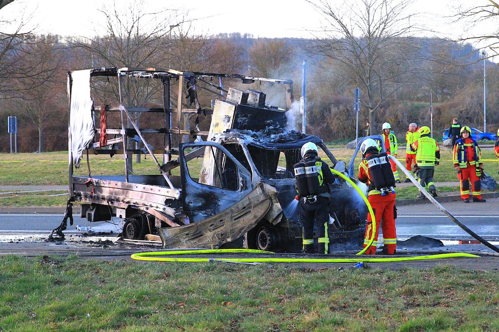 Hier geriet aus bisher ungeklärter Ursache ein LKW in Brand. Beim Eintreffen der Einsatzkräfte stand das Fahrzeug bereits in Vollbrand. Trotz des schnellen Eingreifens der Feuerwehr konnte nicht verhindert werden, dass der Truck komplett ausbrannte.
