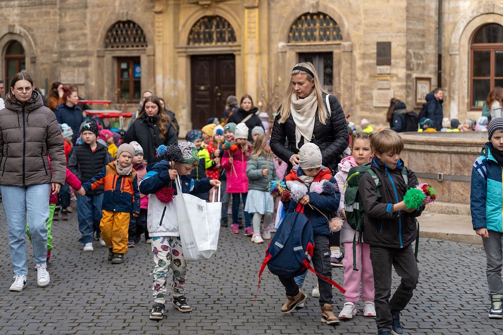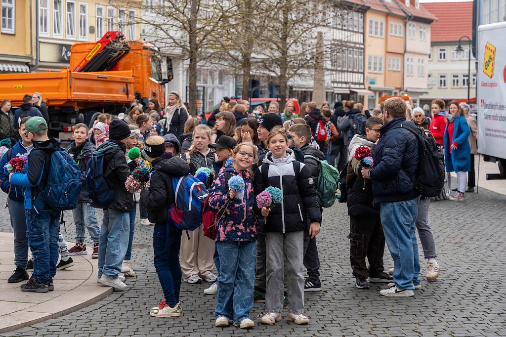Wieder ein Festumzug durch die Innenstadt und wieder mit den kleinsten Bad Langensalzaern. Im Rahmen des Frühjahrsputzes wurden zigtausende Bommelblumen auf den Grünflächen der Stadt verteilt …