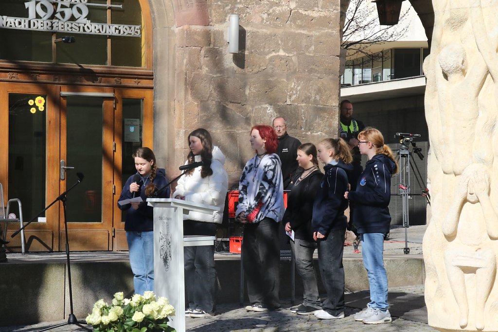 Doch aufgegeben habe man nicht. Wo alles verloren war, blieben Mut und Zuversicht und eine Liebe zur Stadt. Diese Tage müssten unvergessen bleiben und seien in jedem Jahr wichtig, auch um zu mahnen, was Krieg und Gewalt anrichten und warum man sich für Hoffnung, Versöhnung und Frieden einsetzen sollte. Nie wieder dürfe jenes Gedankengut Fuß fassen, das soviel Leid gebracht hat. Freiheit, Demokratie und Rechtsstaat müsse man verteidigen und dürfe Hass und Hetze nicht tolerieren, sagt der OB.