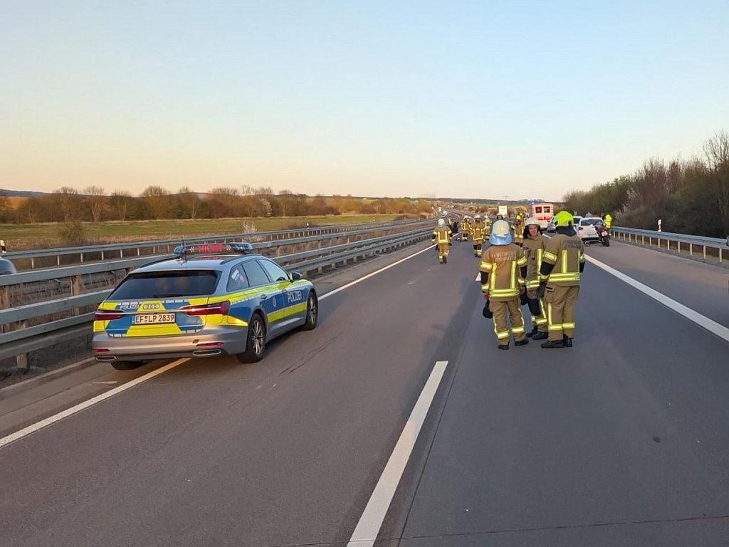 Der Biker wurde bei dem Unfall schwer verletzt und musste laut Angaben der Autobahnpolizei notoperiert werden. Der Gesamtunfallschaden wird mit 25.000,- Euro beziffert. Die Autobahn in Fahrtrichtung Leipzig war voll gesperrt.