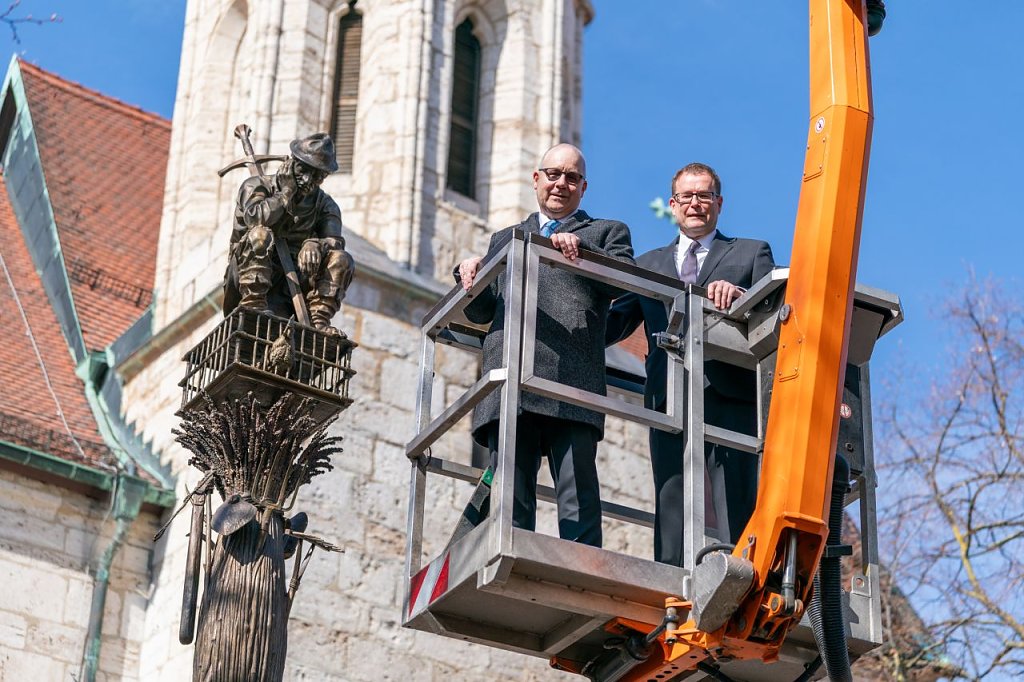 Das Kunstwerk, basierend auf einer Zeichnung des berühmten Renaissance-Künstlers Albrecht Dürer aus dem Jahr 1525, ist das Ergebnis bürgerschaftlichen Engagements und symbolisiert einen Meilenstein im Jahr der Freiheit zum Gedenken an 500 Jahre Bauernkrieg.
