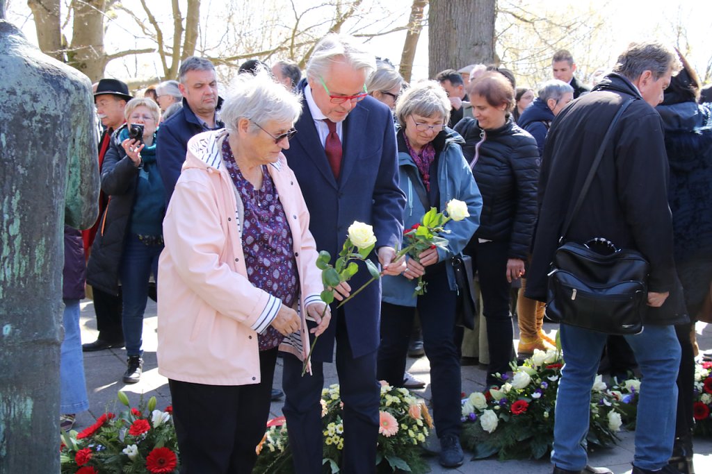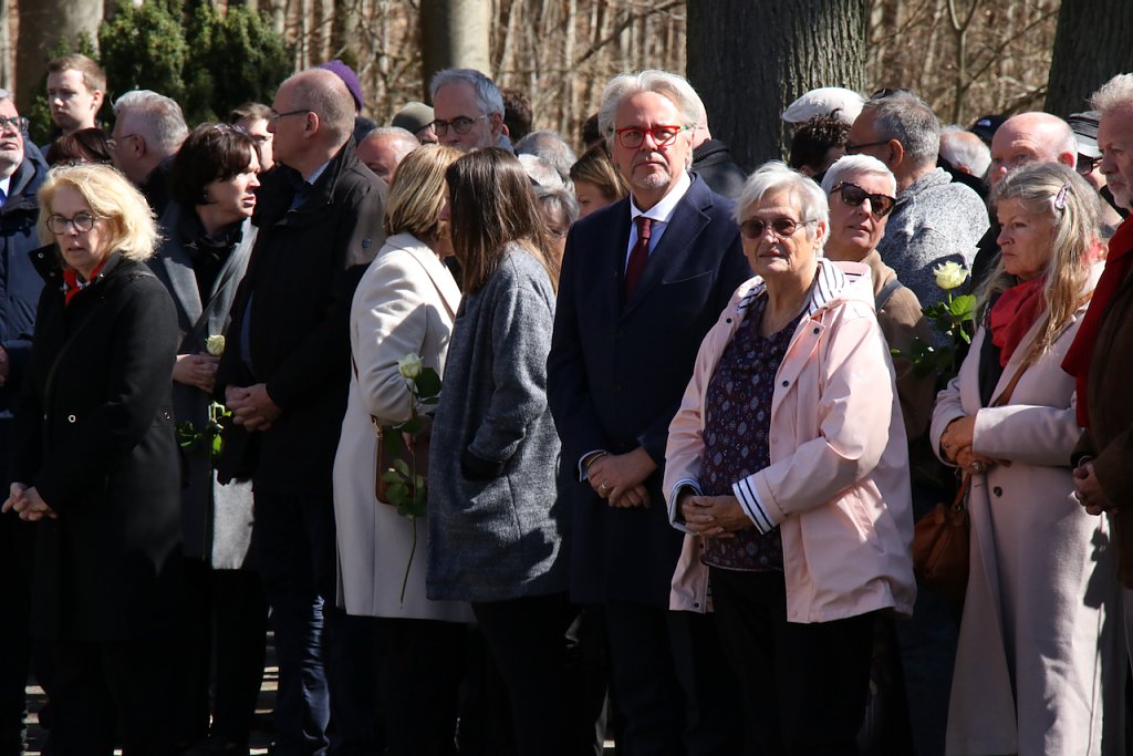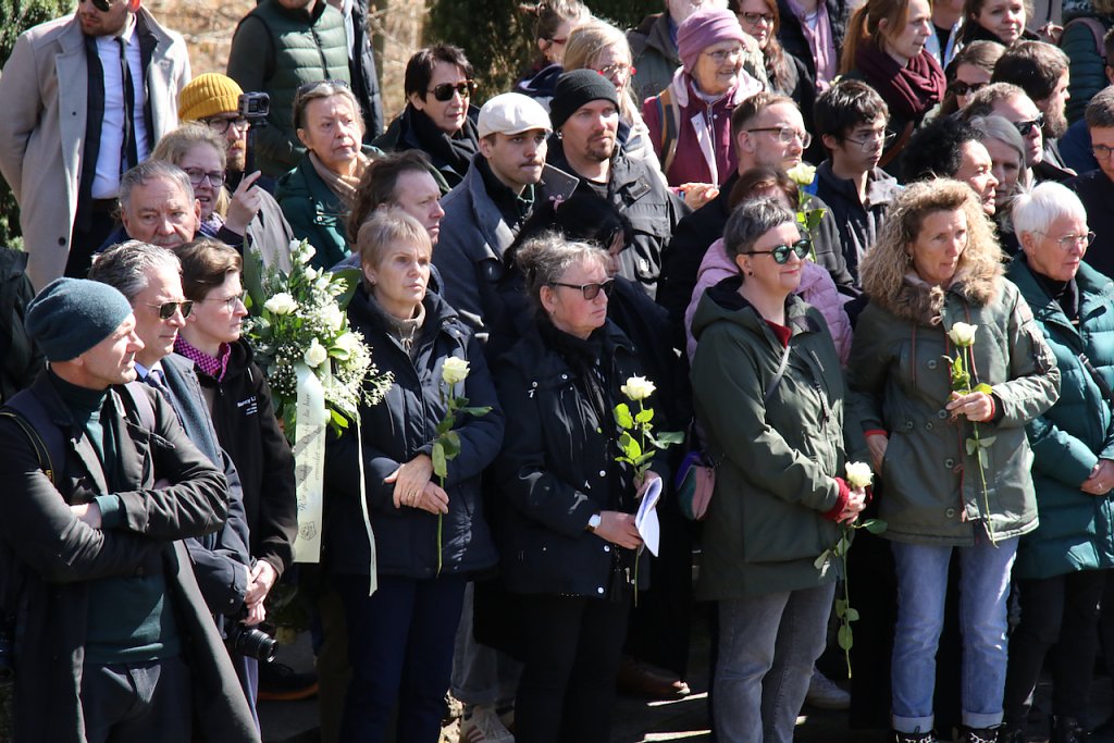 Zur Kranzniederlegung vor dem Krematorium versammelten sich rund 500 Gäste, noch fünf Stühle hatte man für die Ehrengäste aufgestellt, besetzt wurde nur einer.