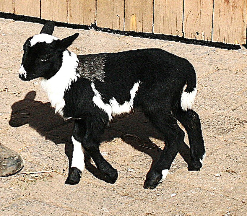 Eins ist dreifarbig, schwarz, weiß und grau - ein kleines Wunder der Natur. Es hat es aber nicht leicht, denn das Muttertier hat es nicht angenommen. Es wird nun mit der Flasche großgezogen. Es landet aber nicht zum Osterfest in der Pfanne. Na dann viel Erfolg.