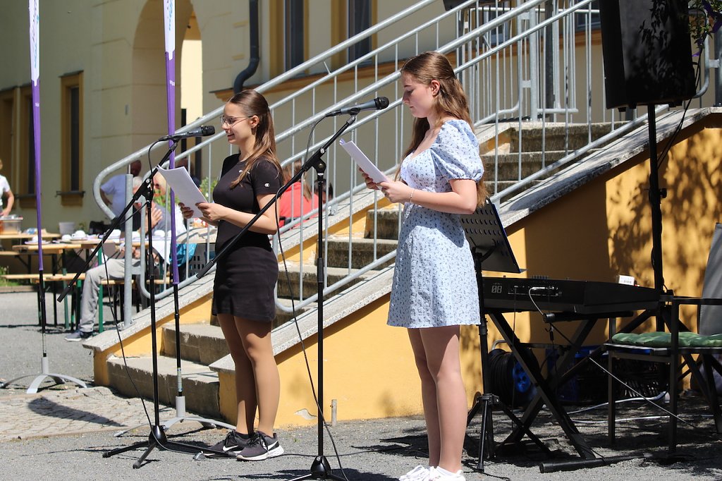Dort boten Schülerinnen und Schüler der Gemeinschaftsschule "Friedrich von Hardenberg" in Greußen den Anwesenden des Festaktes ein buntes Programm mit Musik, Tanz und Erzählungen aus der Geschichte rund um "Novalis"