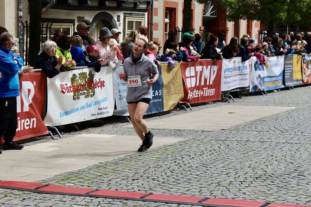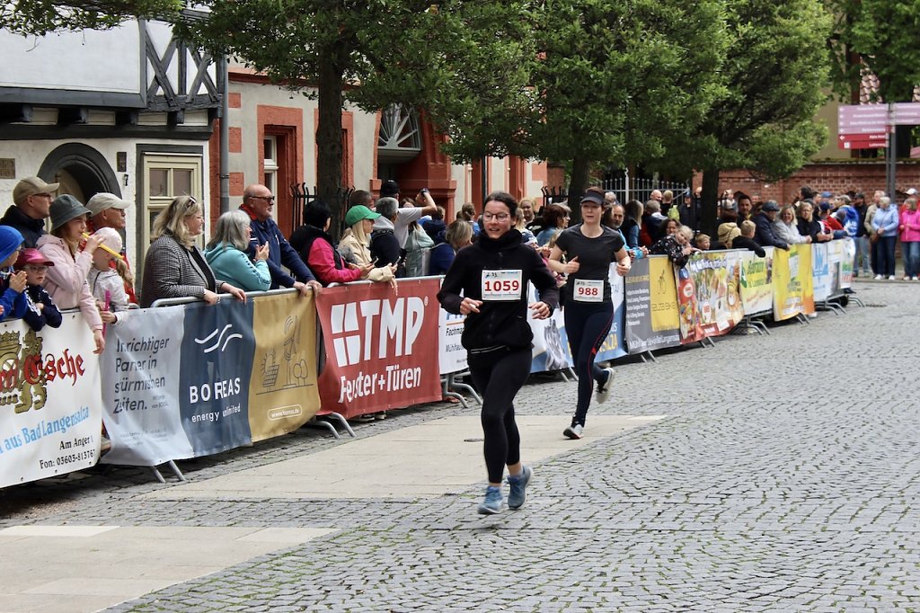 Die herausragendste Leistung zeigte aber wohl die junge Lucie Schmied aus dem Schulteam des Salza-Gymansiums, die im 5-km-Lauf nicht nur die Starterinnen ihres Geschlechts hinter sich ließ, sondern insgesamt den dritten Platz im Lauf belegte. Ihr folgte in der Frauenkonkurrenz Adelheid Angermann vom einheimischen SV Empor und Frieda Bode vom SV Concordia Großengottern. Die war gestern erst in einem anstrengenden Wertungslauf gestartet und hatte keine 24 Stunden Pause dazwischen.