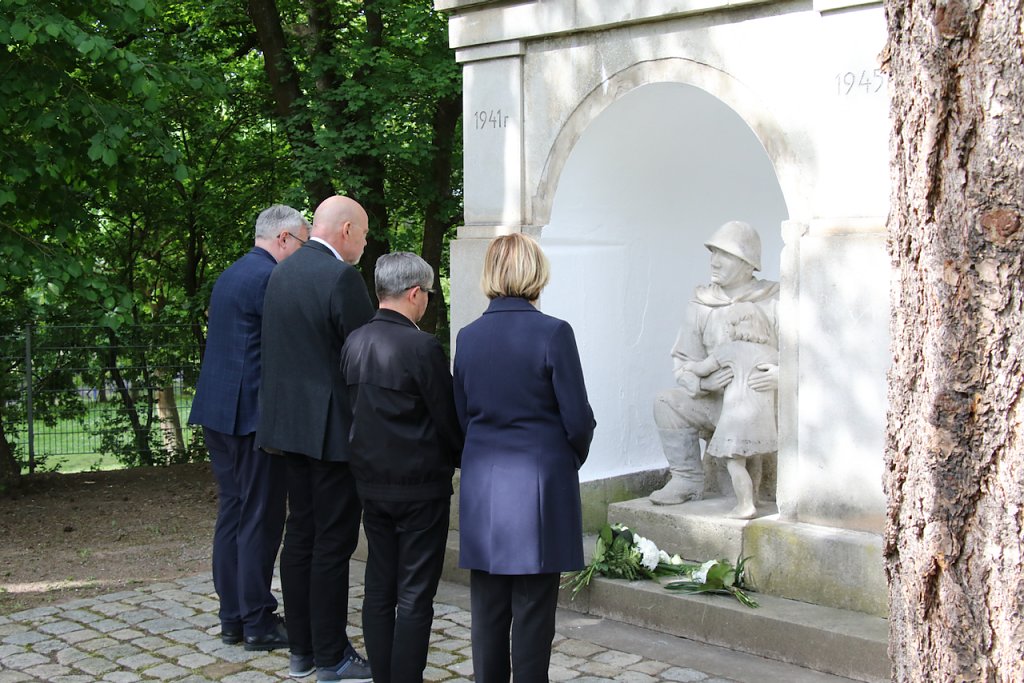 Nach der Kranzniederlegung am Mahnmal durch die Verterter fast aller Parteien sowie einiger Bürger zog man weiter zum sowjetischen Ehrenfriedhof um auch hier Blumen niederzulegen.