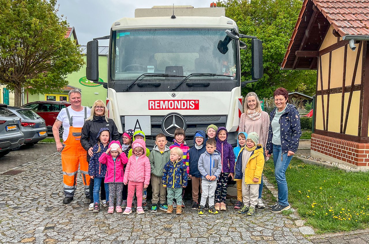 Ein ganz besonderes Highlight: Ein Müllauto der Firma Remondis verband die regelmäßige Abfuhr mit einem Besuch der Kita und holte dort die blauen Tonnen ab. Die Kinder durften nicht nur zusehen, sondern sogar selbst im großen Müllauto Platz nehmen – ein unvergessliches Erlebnis.