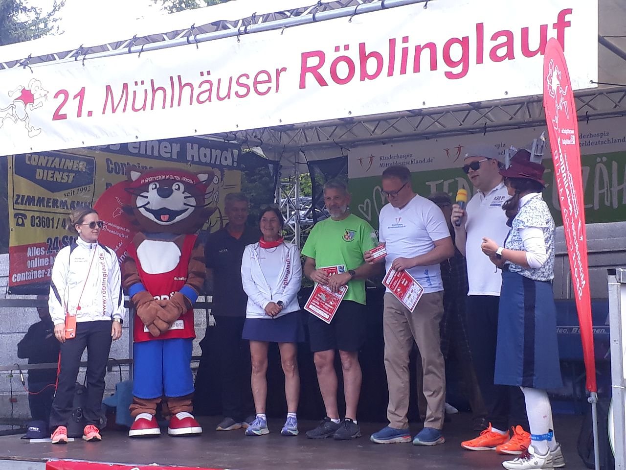 Eröffnungszeremonie des 21. Röblinglaufs in Mühlhausen, u.a. mit Ministerpräsident, Landrat und "Muskelkater" (Foto: Markus Fromm)
