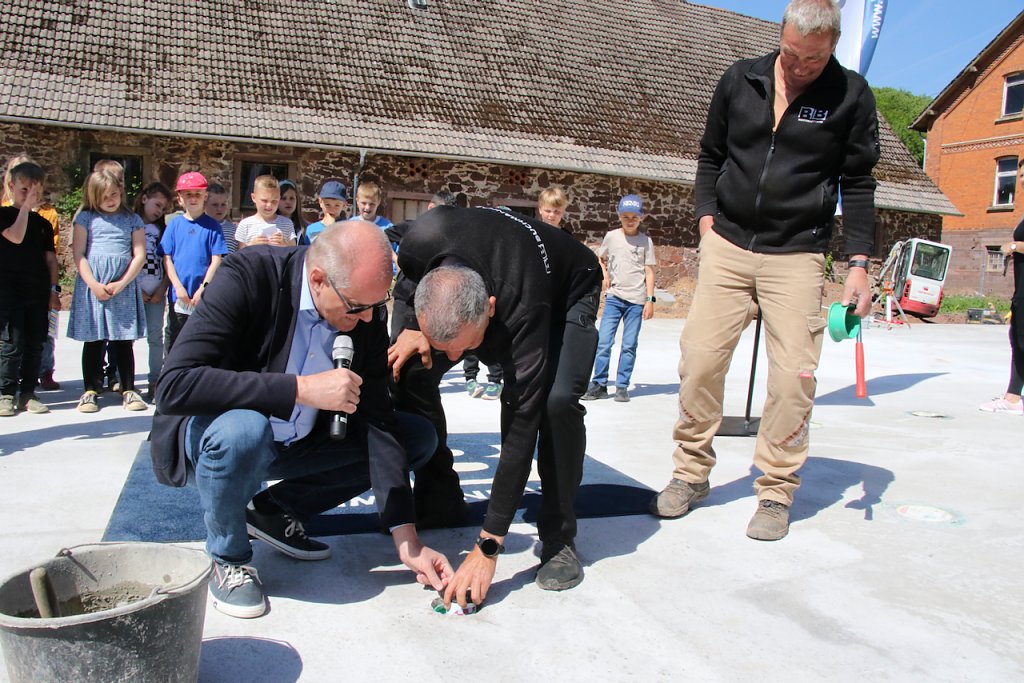 Nach der heutigen Grundsteinlegung soll es zügig weiter gehen, in den nächsten Wochen sollen die Holzwände hochgezogen werden (Foto: agl)
