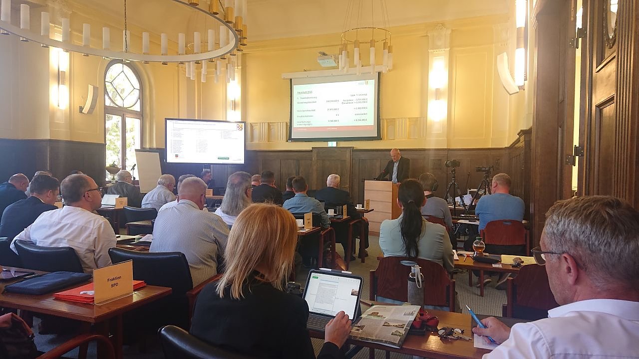 Nun noch etwas Bürokratie dann geht es zu den Beschlussfassungen. Los geht es mit dem Haushalt, der Landrat führt ein. Kämmerer Kaun wird die ausführliche Darstellung heute nicht noch einmal zum Besten geben, das ist in den Ausschüssen mehrfach geschehen, die nnz berichtet etwa aus dem Finanzausschuss.