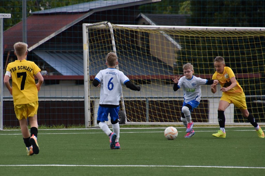 Die Wacker-Kids ließen sich von dem Anschlusstreffer nicht beindrucken und spielte auf Angriff. In der 70. Minute verfehlte Luca Jünemann mit seinem Freistoß nur knapp das Tor der Schleizer. Der Schiedsrichter zeigte 7 Minuten Nachspielzeit an. Dies nutzten die Südharzer aus. Ein schneller Einwurf von Leonart Görisch auf der linken Seite in den Lauf von Chance Tchete nutzte dieser mit seinem Tempo aus, ließ den Verteidiger stehen und erhöhte mit seinem 3. Treffer auf 1:3. Bis zum Abpfiff des Schiedsrichters, nach 9 Min. Nachspielzeit, blieb es das Endergebnis.